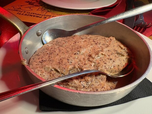 お店特製のマル秘レシピによるポレンタが絶品で、温かく食べられるよう、小型のフライパンでサービスしてくれます。
