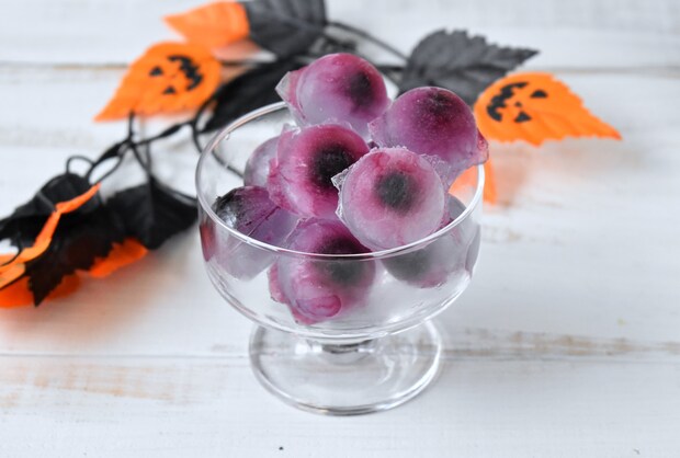目玉氷をグラスにたくさん盛っておくだけで、効果的なハロウィンの演出に。各々が好きなドリンクを注いで、パーティーを思う存分楽しんでみてはいかがですか?おすすめの記事はこちら▼