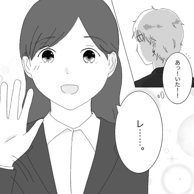 「!!!」レンの隣に知らない女性が!?「誰っ!?」と呟きながら、嬉しそうなレンの顔をじっと見つめていました。
