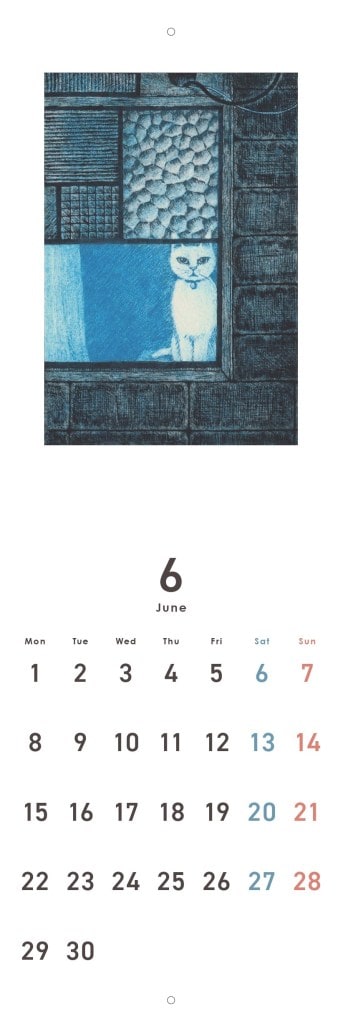 毎年恒例でおなじみの猫専門書肆・吾輩堂さんから、新作カレンダー発売のご案内を頂戴しましたので、謹んで読者諸賢にご報告申し上げます。2026年版はイラストレーター坂本千明さんの手に成る、紙版画作品から仕立てたオリヂナルカレンダー「ねこのうた」。