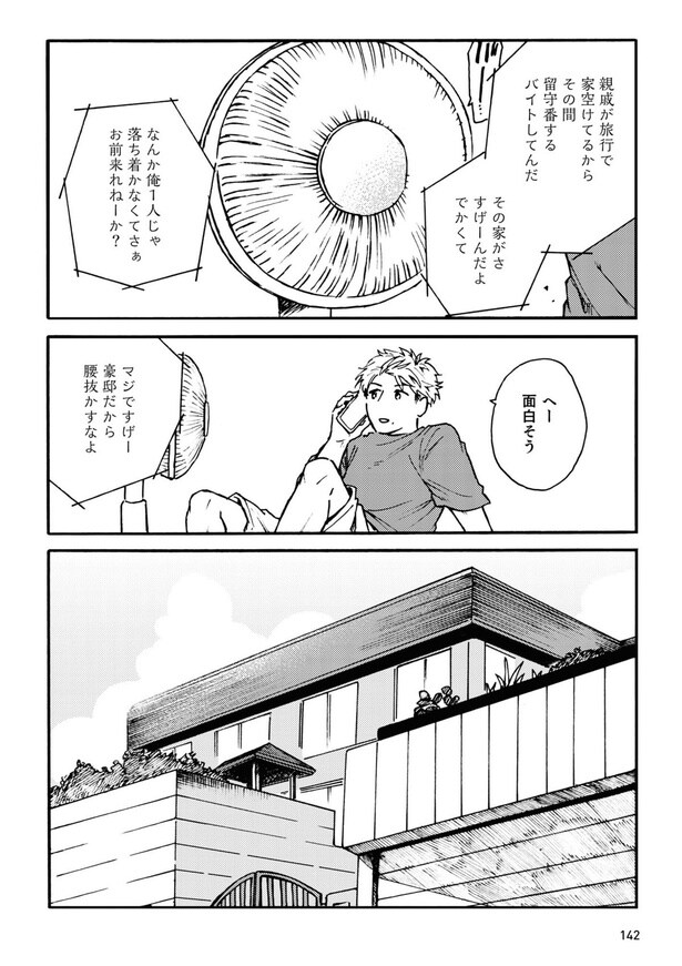 夏休み中、友達からバイトの誘いを受けた大学生。バイトの内容は“旅行中の親戚の家を留守番する”というもの。そこは豪邸で家主からは潤沢な生活費を貰えて、友達と2人で最高の夏休みになる予感がしていたのだが…?