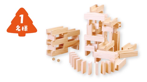 からからつみきは、宮崎県産杉を使用した軽くて柔らかい手触りの100%天然素材の積み木です。全てが同じ比率で作られているので、組み方の工夫次第で遊び方は無限大! こちらは、ビー玉を転がすことができる坂道の積み木「コロカラつみき」も入ったセット、さらにさまざまな遊びが楽しめます。