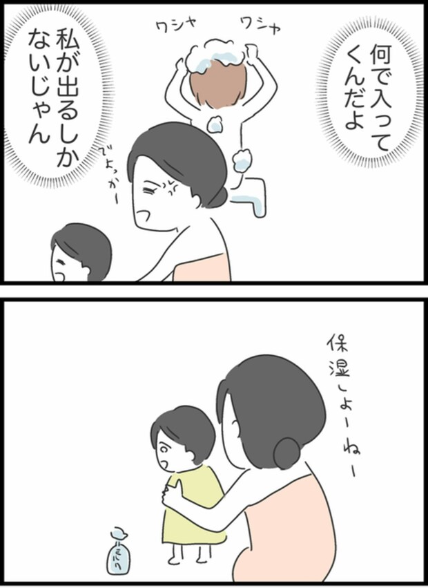 ゆうたをお風呂から上げて、しょうたにお願いしようと思っていたようこでしたが、「自分も入る」と言い出したしょうたもお風呂に入ったことで予定変更。結局自分がゆうたをお風呂から上げて髪を乾かしたのですが…。