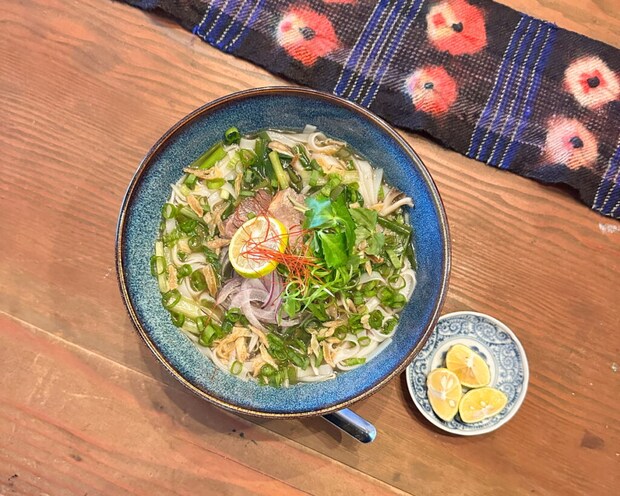 スープは牛骨をベースに、無添加の和風出汁をブレンドした自家製仕立て。