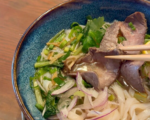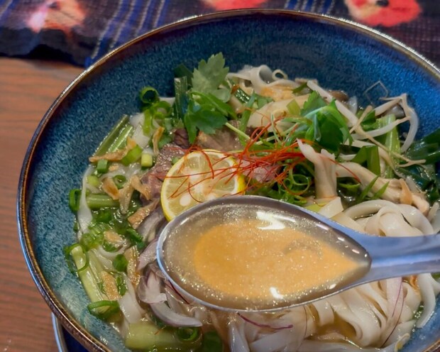たっぷりの野菜に、ローストビーフまでのった贅沢なフォー。