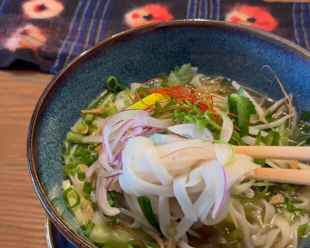 フォーに使われているれんげは、春佳さんが初めてタイ・チェンマイを訪れた際、お母さまの仕事に同行して立ち寄った業務用市場で見つけたものなのだそう。
