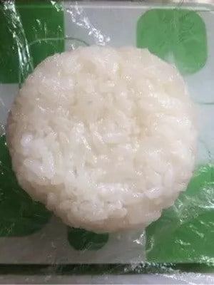 2.ラップでおにぎりを作ります。