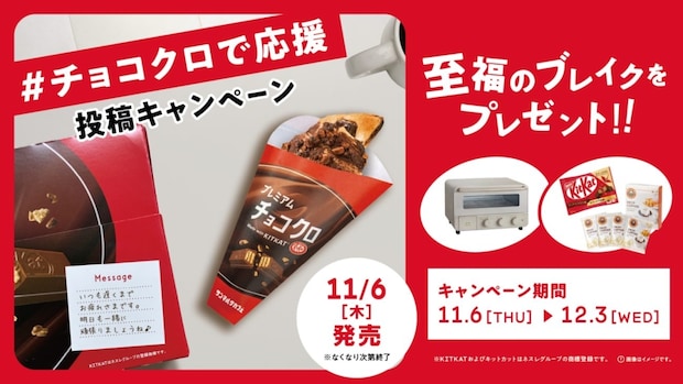 サンマルクカフェ公式Instagramアカウント(@saint_marc_cafe_official)をフォローのうえ、期間中に「プレミアムチョコクロ Made with KITKAT」入りのBOXを購入し、メッセージを記入・写真を投稿することで参加。