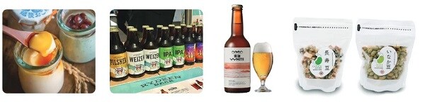 小千谷ゆかりの品は、アグリたかの「山本山高原ビール」、高の井酒造「たかの井 清酒 カップ」、新潟銘醸「N-888 HOP Sparkling」「長者盛 長者カップ」、竹内製菓「おぢやおかき」、竹島屋製菓「いなか豆」「長寿豆」、澤田屋「錦鯉もなか」。南魚沼ゆかりの品は、猿倉山ビール醸造所「ライディーンビール」、青木酒造「雪男サイダー」、今成漬物店「つけもなか」、ミライス「越後おこめぷりん」だ。