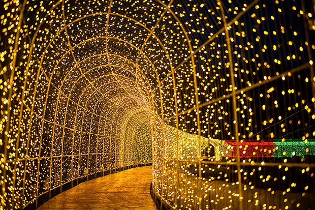 開場内は見渡す限りイルミネーションで彩られているのですが、その中でも特におすすめなのが光のトンネル。