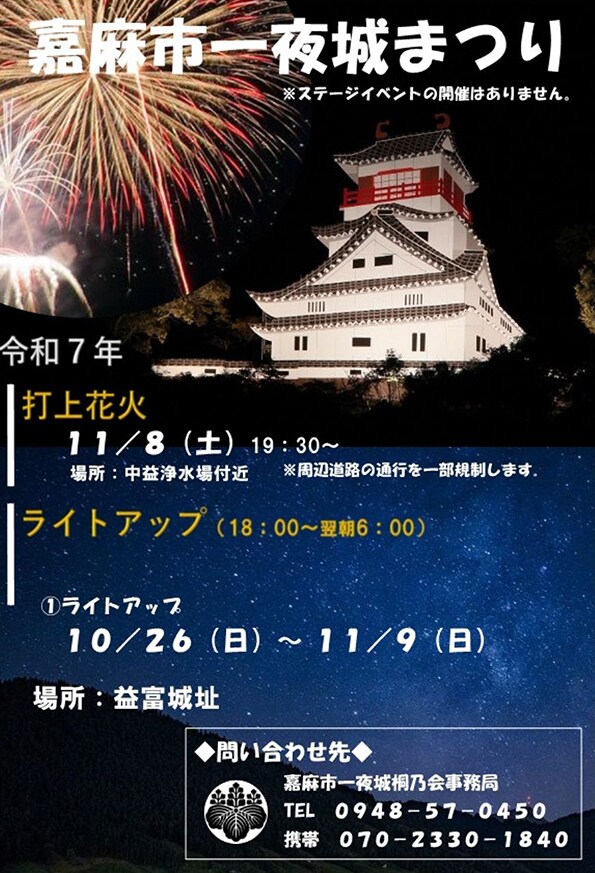 The post 【嘉麻】「第33回 嘉麻市一夜城まつり」開催。11月8日(土)には約1,000発の花火が打ち上げられます! first appeared on 筑豊情報マガジンWING.
