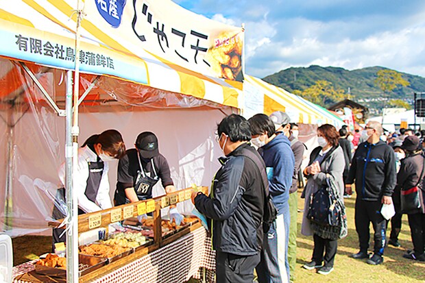 「みかん(マーマレード)と魚とちゃんぽんのまち八幡浜」の魅力を発信しようと始まったイベントなので、出店ブースでは八幡浜自慢の海の幸・山の幸が大集合!