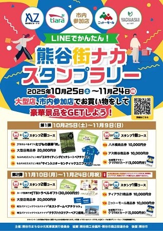 「LINEでかんたん!熊谷街ナカデジタルスタンプラリー」は、市内の大型商業施設(アズ熊谷/ティアラ21/ニットーモール/八木橋百貨店)をはじめ、市内200店舗以上が参加する、熊谷の街を歩きながら楽しめるデジタルスタンプラリー。