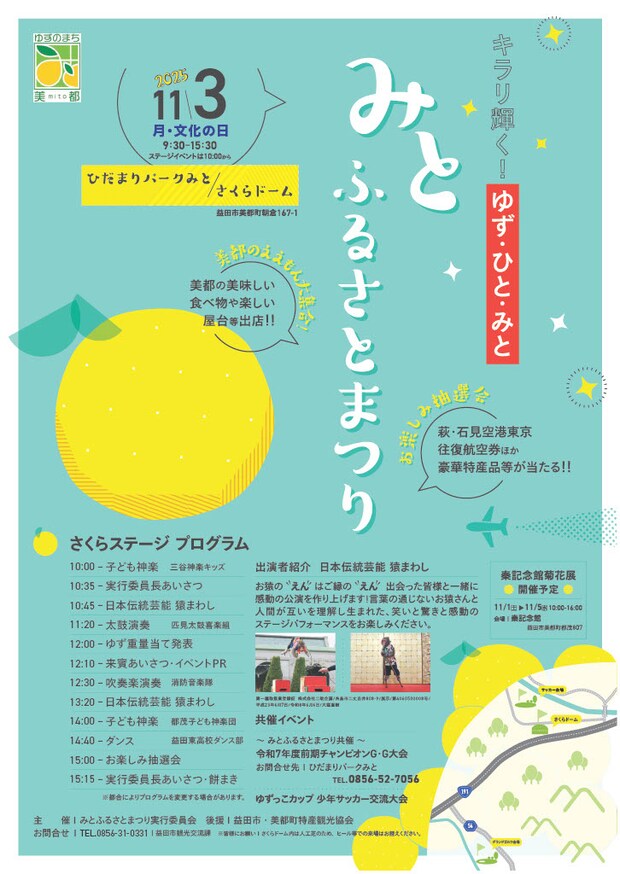 伝統芸能を沢山とりいれたステージに、美都のええもん大集合の出店など、楽しい一日になること間違いなし!ぜひお越しください!