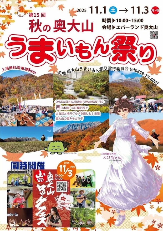 大山の雄大な景色と紅葉とともに、地元有名店のグルメを楽しめる「秋の奥大山 うまいもん祭り」。
