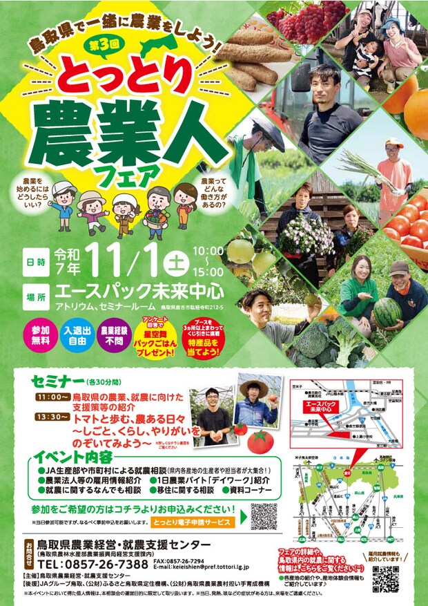 鳥取県で農業を始めるための相談や情報収集ができるイベントです!