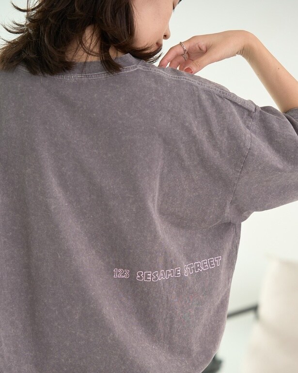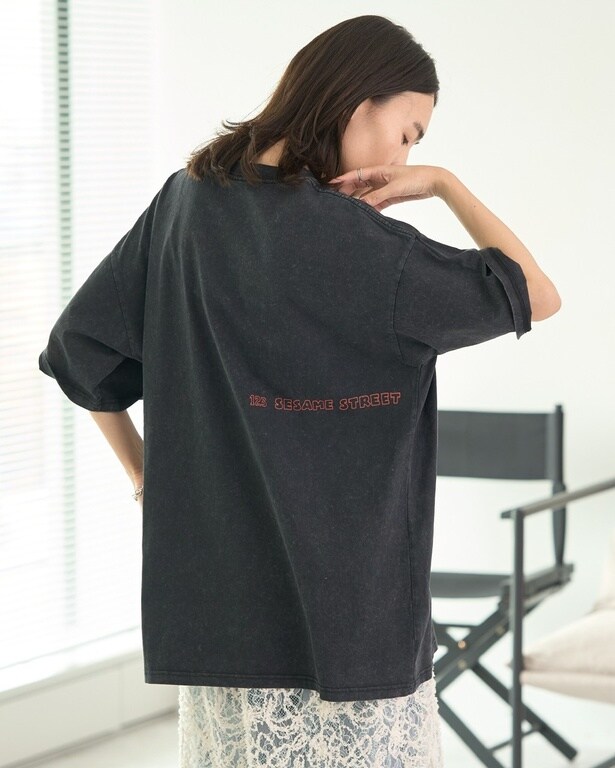 今回登場するのは、クッキーモンスター(ブルー)、ビッグバード(ライトグレー)、アーニーとバート(チャコール)の3種類。各キャラクターらしさの伝わるワンポイントを胸元にさりげなく配し、大人女性が違和感なく着こなせる。また、ピグメント加工による独特の風合いもポイント。新品なのにどこかヴィンテージライクな雰囲気があり、1枚で着てもこなれ感のあるスタイリングが完成する。