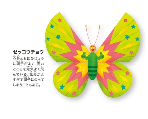 どの超チョウも、ビジュアルが魅力的なのはもちろん、思わずくすっとなるような超チョウの名前や生態系の説明文に、どんどん惹き込まれていくこと間違いなし。