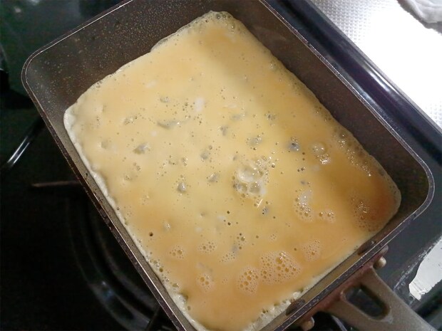 5. 卵は溶いて、薄焼き卵を作る。アボカドは皮を剥いてくし形に切る。
