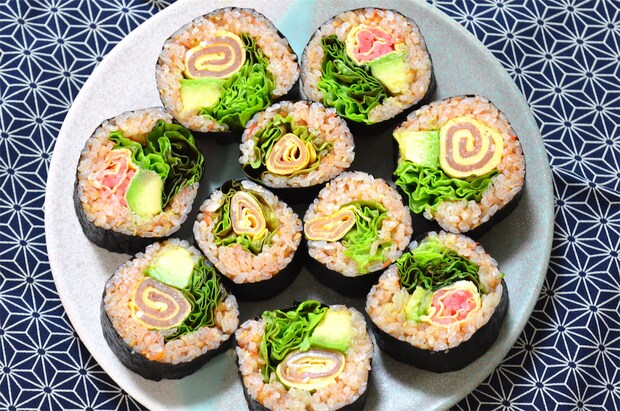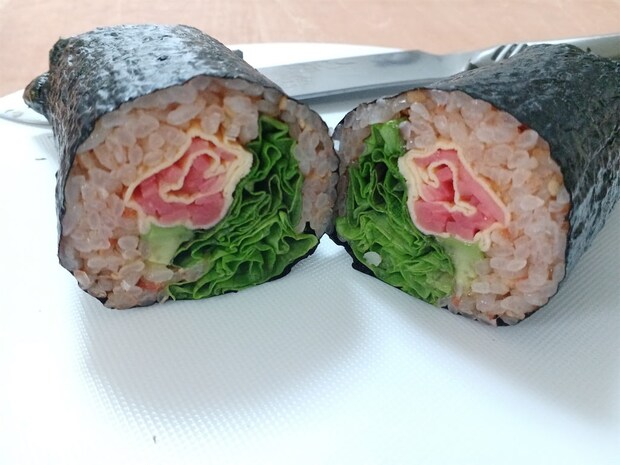 トマトがしっかり主張しているので、普通の巻き寿司とは違い、イタリア料理の前菜みたいになりました!