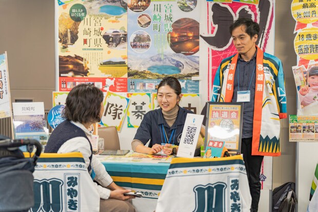 宮城県内全35市町村と、就職(企業・教職員)、地域おこし協力隊、農業、住まいなどのブースがずらり! 移住地域が決まってなくても、総合案内ブースで相談OK♪