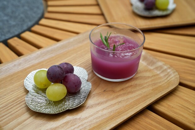 体験後には、特別に自家栽培のぶどうとそのぶどうで作られたフレッシュジュースをいただきました。