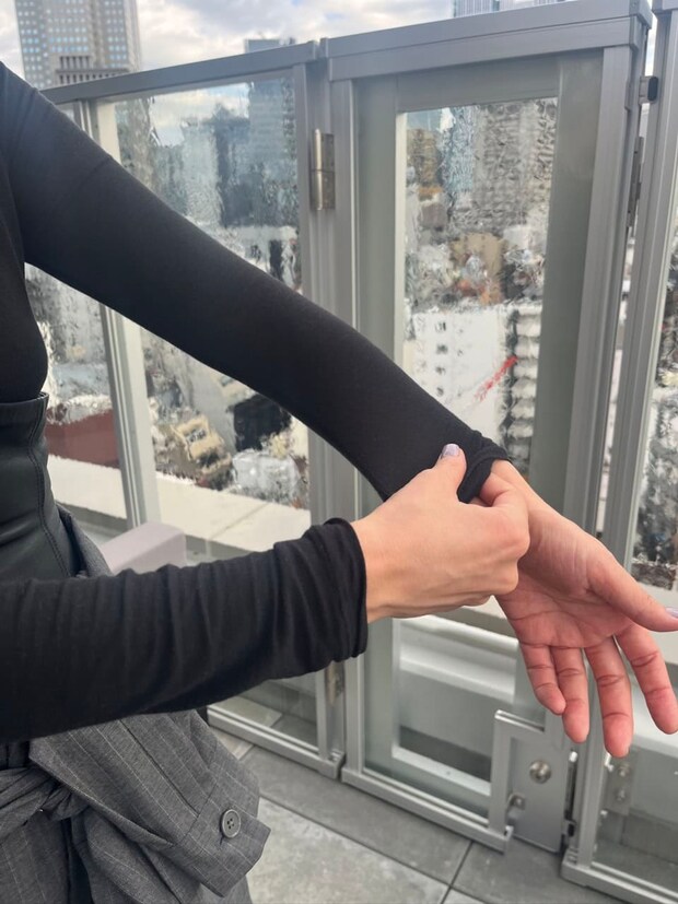 あと個人的に気に入っているのは、ほどよく透け感があること。クルーネックは1枚でも着たいと思っていたので、このシアーな風合いは重要。だって、絶妙な抜け感を演出できますから。同時にインナー感がちょっぴり薄まるので、より1枚で着やすくなるんです。あくまでも極暖なので薄手でもかなり暖かいですし、レイヤードしても着ぶくれしないのもうれしいポイントですね。