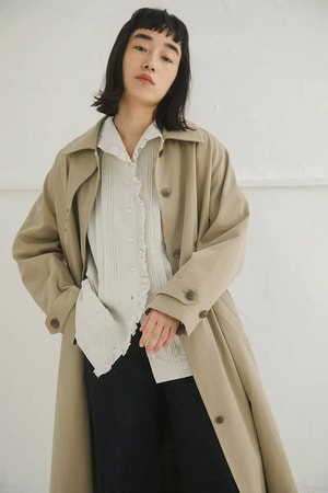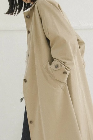 なだらかなラグランスリーブと、トレンチコートのようにゆとりを持たせた身頃が特徴で、肌に馴染むような軽やかな着心地が魅力。動きやすく上品なシルエットになっており、長いシーズンで活躍する、ブランドを代表する一着だ。