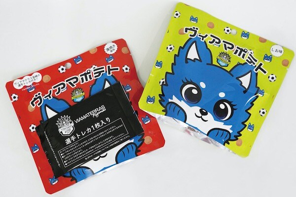 完成した「ヴィアマポテト」は、「ヴィアマポテト(しお味)」220円(税込)、「ヴィアマポテト(蒲焼風味/トレカ付き)」300円(税込)の2種類。内容量はいずれも50g。10月25日(土)より新富町農畜産物直売所ルーピンと、いちごサッカースタジアム(「ヴィアマテラス宮崎」の試合開催時)にて販売している。販売価格、販売場所は変更になる場合がある。