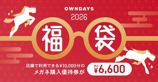 メガネ・サングラスの製造販売を手掛ける「OWNDAYS(オンデーズ)」(東京都品川区)が、1万円相当のメガネ購入優待券が入った福袋「OWNDAYS福袋2026」を10月30日からオンラインストアで先行販売をスタートしました。数量限定のため、売り切れ次第終了となります。