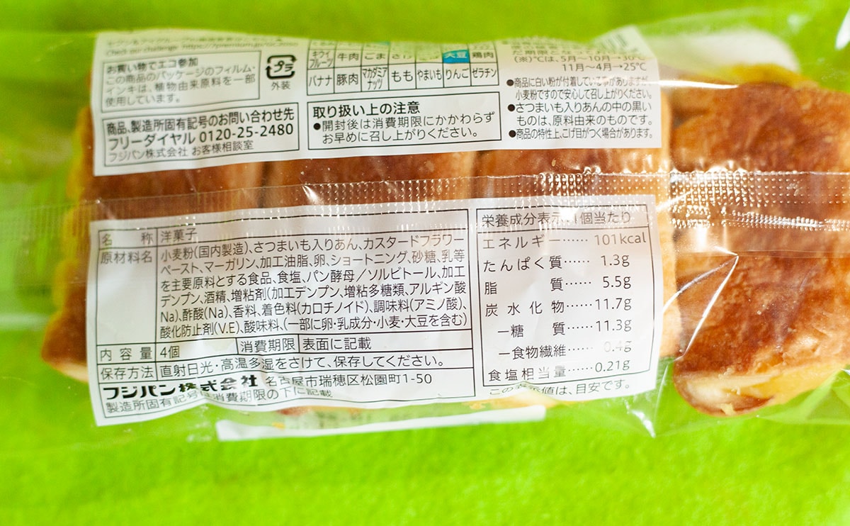 また、カロリーが意外と高すぎないのも◎。1個あたり101kcalとのことで、全部食べれば約400kcalになるわけですが、パイだし、さつまいもだし、カスタードクリームも入っているし……ということを考慮すると、予想よりも低くないですか?