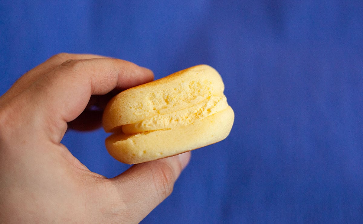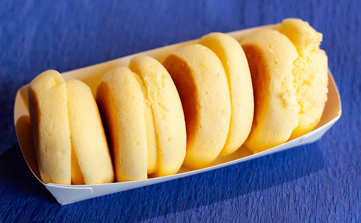 商品名からもなんとなくどんな商品かは予想できますが、たまご風味のスフレ生地でカスタードホイップをサンドしたスイーツで、全部で4個入っています。