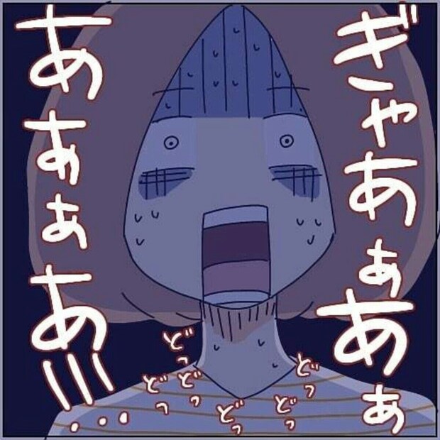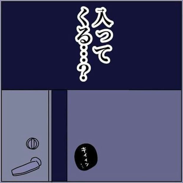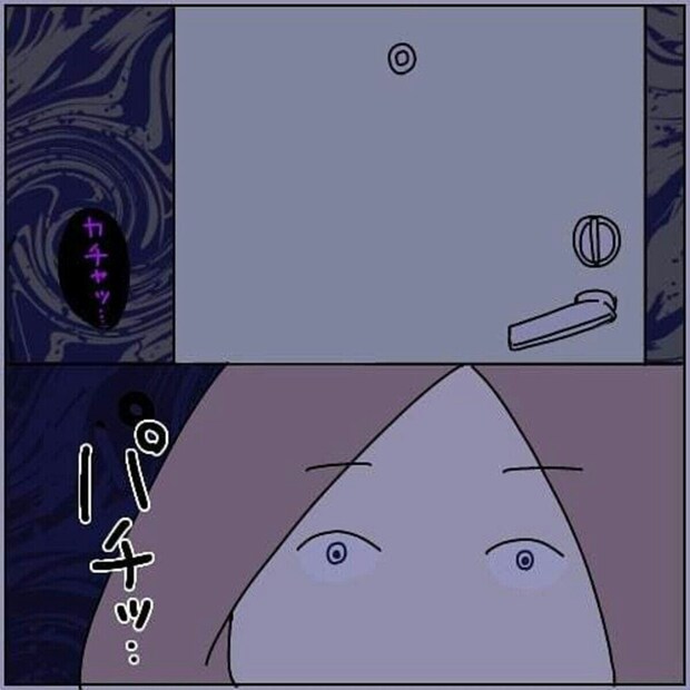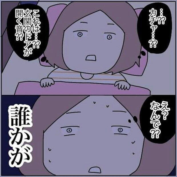 一人暮らしの加藤かとさん。深夜にドアのあく音がした瞬間はどのくらいおそろしかったでしょうか…。逃げることもできずに恐怖で震える加藤かとさんは見知らぬ人間と目が合います。