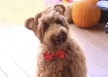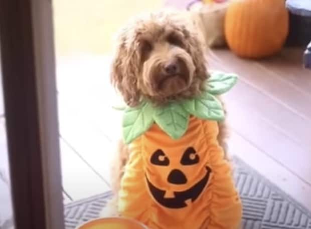 ドアを開けたら、可愛い衣装をきた犬さんが!