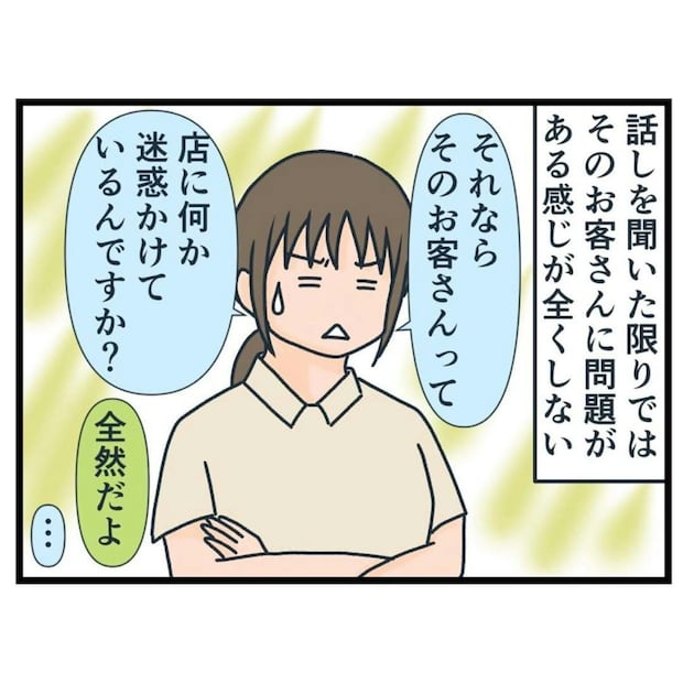 問句さんのクレームを聞いたところで、実際には新規の女性客に非があるようには思えないナエくまさん。坂本さんも同様に、現時点で新規のお客さんに何かネガティブな対応をされたということはないようです。