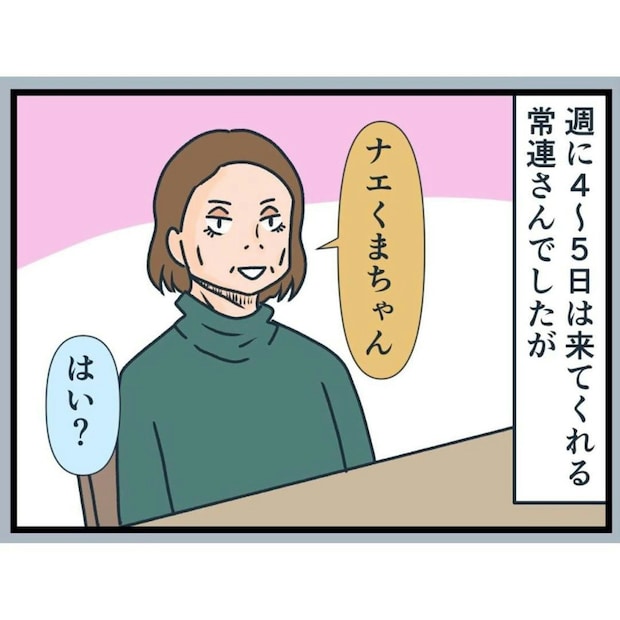 主人公のナエくまさんは飲食店で働いています。同僚には坂本さんという男性がおり、ある日、坂本さんから常連客についての相談を受けました。