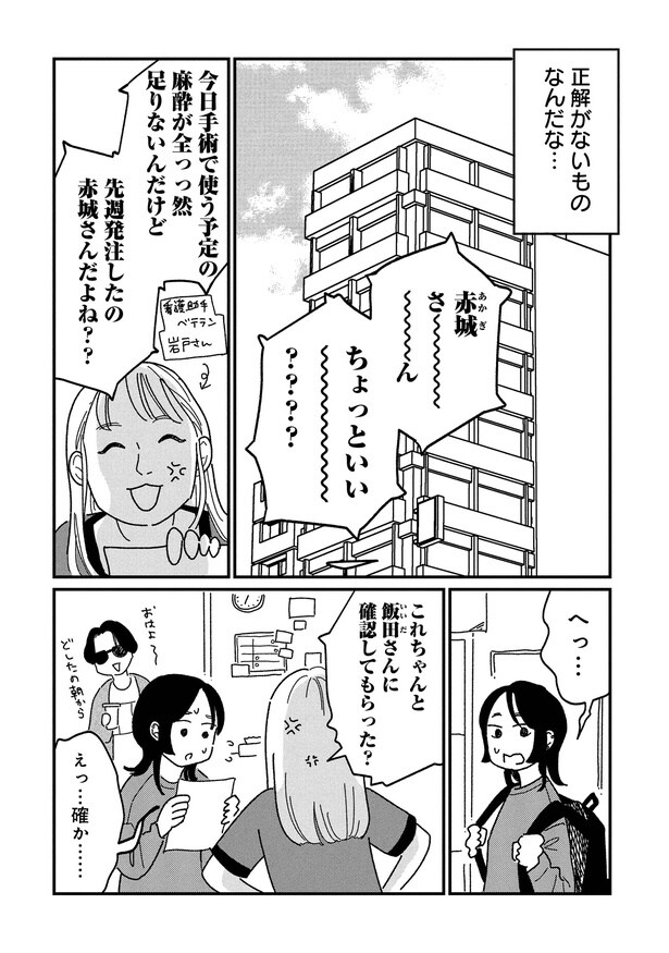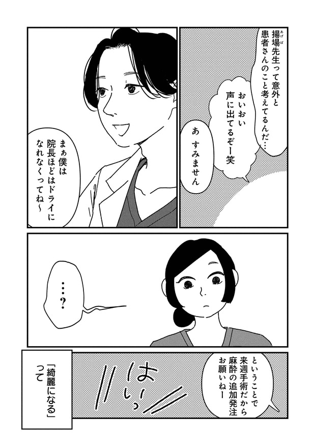 前回、アニメキャラの顔にあこがれる女性を納得させた医師に感心した赤城。しかし直後に手術用麻酔の発注ミスが発覚。慌てる赤城の前にクリニックの院長が現れ…。
