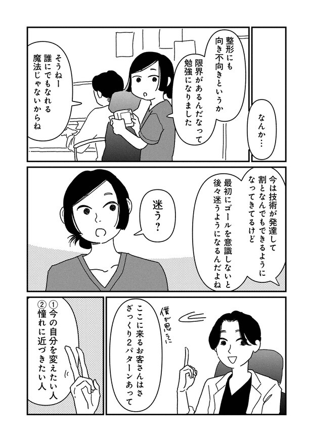 「女の人生に整形って必要ですか?~美容整形の裏側がカオスだった話~」(原案:パチ美/漫画:金子べら/新潮社)から全6回連載でお届け。今回は第4回となる。