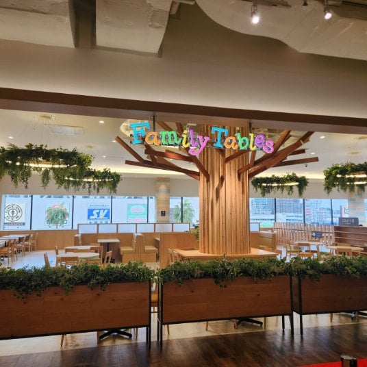 特にフードコートは、今回1,400席を新設。既存館の西館・North Gateのフードコートと合わせて、総席数2,500席を確保した。子供連れの家族も快適に過ごせるように、小上がり席やキッズスペースを完備したファミリーゾーンも設ける。