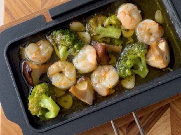 手持ちのフライパンが大きめサイズしかなくオリーブオイルを多く使いがちなアヒージョは、『GLAMP.(グランプ) ホットサンドディッシュ』なら少ない油量で作れるので、ハマる人続出です(笑)。波型プレートでソーセージを焼くだけでも気分が盛り上がりますよ。パパの誕生日プレゼントにもおすすめ♡