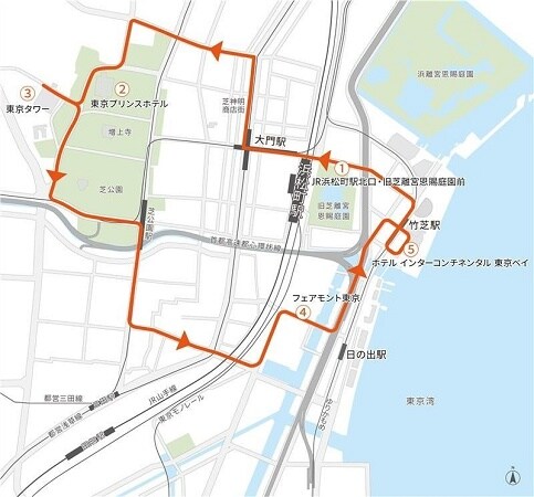 運行ルートは、JR浜松町駅北口・旧芝離宮恩賜庭園前→東京プリンスホテル→東京タワー→フェアモント東京→ホテル インターコンチネンタル 東京ベイ(循環)。利用料金は無料で、使用車両は、大型路線バス・中型路線バスタイプ。時刻表などの詳しい情報は、詳細ページで確認を。