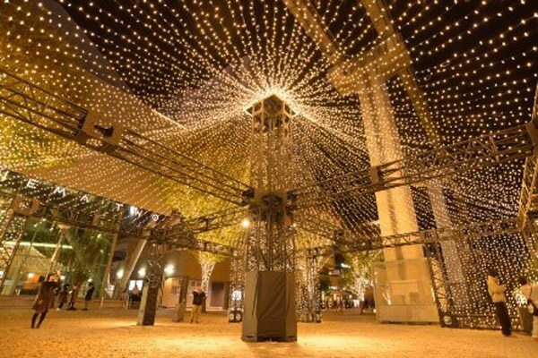 トラスで組まれた「イルミネーション ノード」が登場し、立川の冬の風景に彩りを添える象徴的な光の空間が誕生。サンサンロードの足元には、ライトによる演出も行われる。光の模様が広がり、歩く人々の一歩一歩に幻想的なアクセントが添えられる。