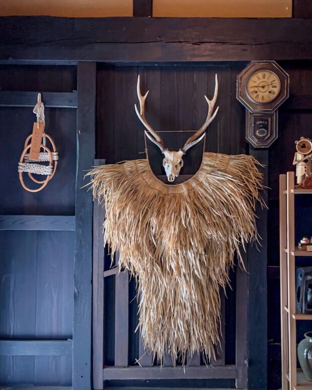 入り口の暖簾をくぐると、目に飛び込んできたのは、鹿の頭部と立派なツノ。