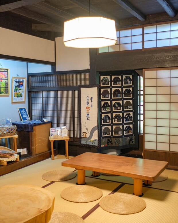 入り口には藍染の暖簾が掛けられており、鳥取県立智頭農林高等学校の生徒さんが制作されたものだそう。