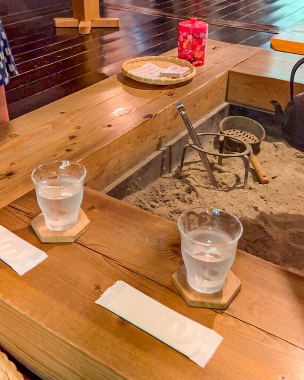 川が見える窓際の席も気になりますが、今日は囲炉裏の席におじゃますることに。