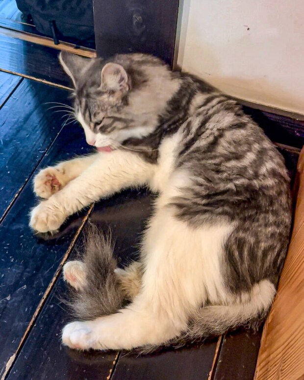 私たちがゆっくりくつろいでいると、あら!?さきほど見かけた猫がいつのまにか後ろに!