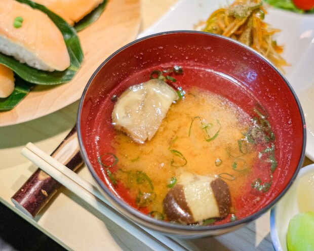 茄子とみょうが、厚揚げが入った味噌汁。
