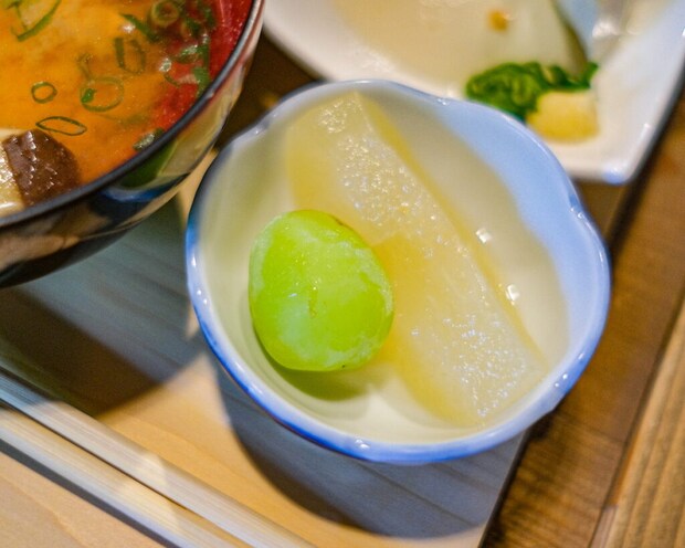 鱒の真ん中には、青山椒の実が二粒ちょこんと添えられていて、ぷちっと噛むと、爽やかでちょっとクセのある香りがふわっと広がって、鱒や酢飯と合わさってたまらない美味しさに。