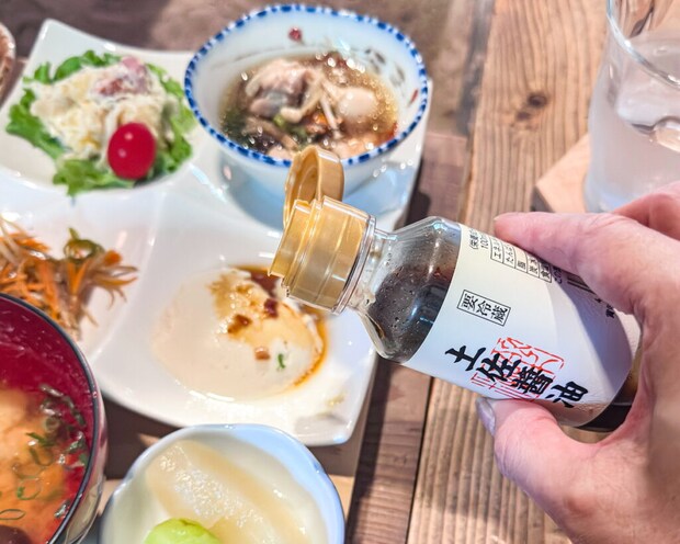 ほのかに甘く、なめらかな口当たりの豆腐に、土佐醤油がよく合い、大豆の風味がいっそう引き立ちます。