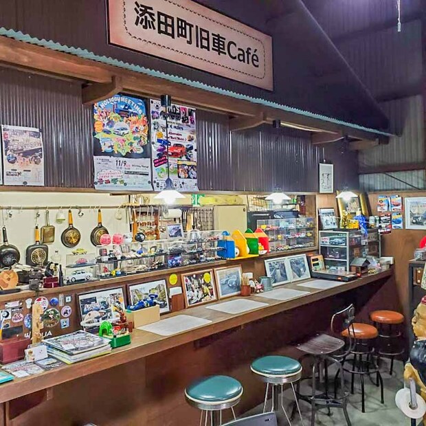古いものに命を吹き込むオーナーの温かい想いと、懐かしい雰囲気に包まれた「添田町旧車Café」。
